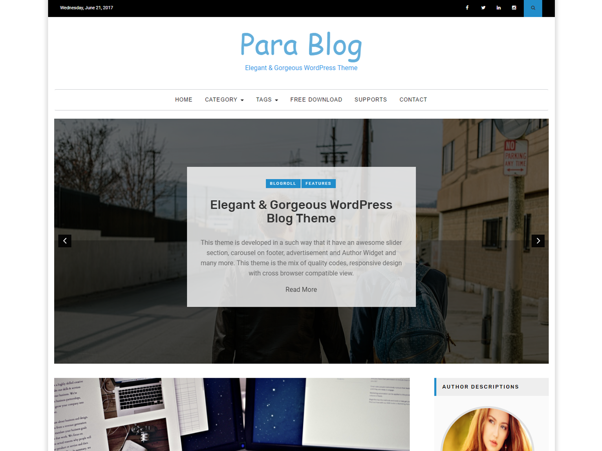 Para Blog is clean and best WordPress theme for blog sites. You can use this theme on your new or existing blog site and can get the best experience for your website. There are lots of features available on this free version.