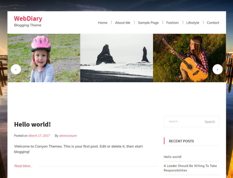 WebDiary is a simple and easy to use, modern and creative, user friendly and elegant, WordPress theme for blog, news and magazine sites. It is very light weighted theme based on customizer.